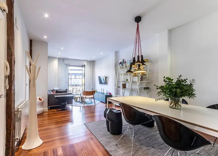 Den 70 m² stora lägenheten ligger 250 meter från tunnelbanestationen Abando och på gångavstånd från Riberamarknaden. En 10 minuters promenad tar dig till Bilbaos centrum. Bland sevärdheterna i närheten av Piso De Diseno Junto Al Casco Viejo Lägenhet finns Jardines de Albia Lorategiak, som ligger mindre än 6 minuters promenad bort.